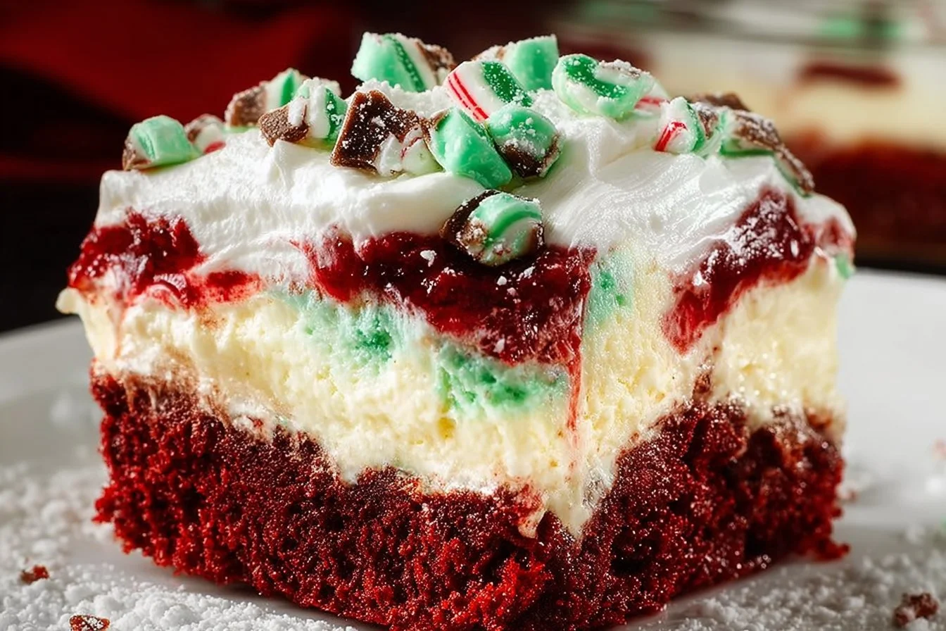 A visually stunning, mouth-watering treat that combines the richness of red velvet cake with creamy layers of indulgence, perfect for holiday gatherings.