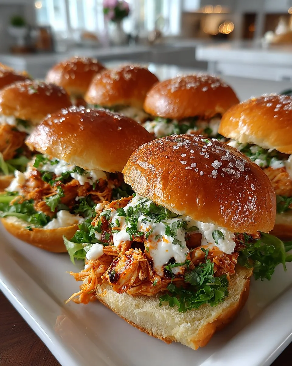 Delicious and satisfying sliders with tender shredded chicken, zesty buffalo sauce, creamy ranch, and melted cheese, perfect for gatherings.