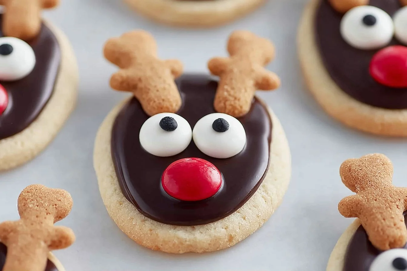 Delightful biscuits decorated to look like reindeer, perfect for festive gatherings and family fun.